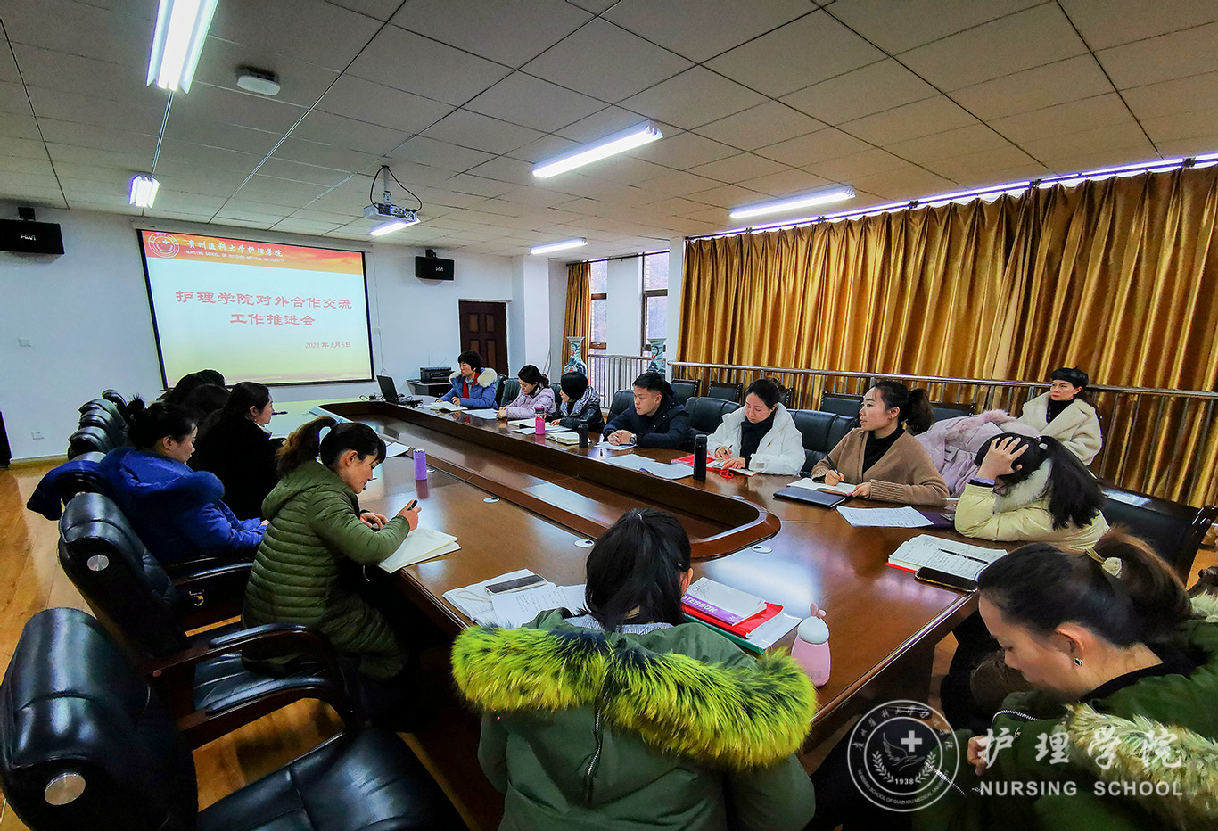 王秀红首先传达了学校2021年外事工作推进会的精神,重点强调了当前推动师生国际交流和中外合作办学项目建设的必要性和对护理学科发展的重要支撑和提升作用。同时结合学院对外合作交流工作开展和推进过程中遇到的困难和具体问题,组织与会老师进行了讨论。