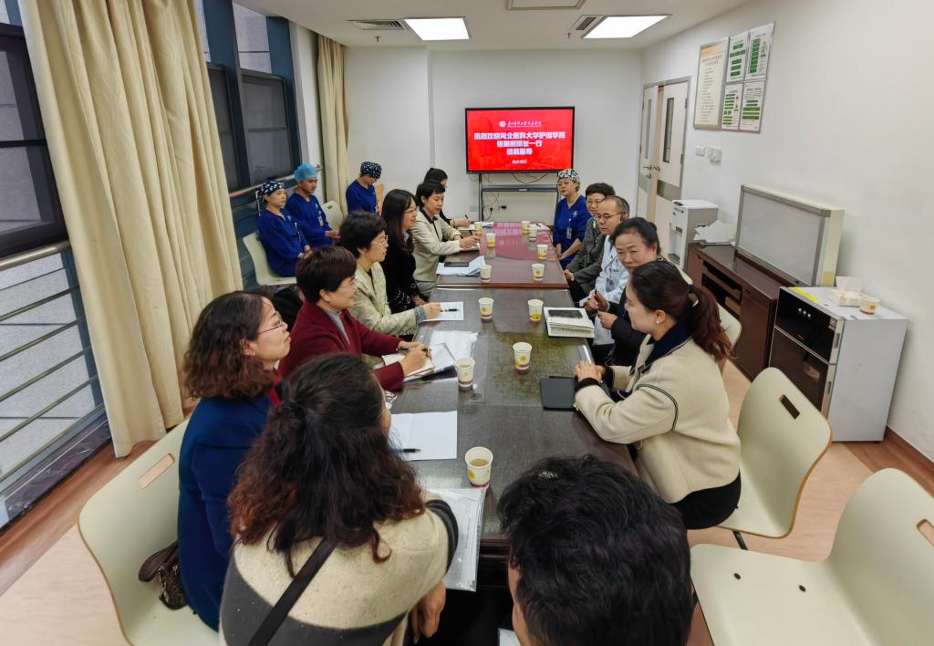 12月2日-3日,河北医科大学美加墨世界杯官方网站院长张瑞丽、副院长赵滨及河北医科大学四所附属医院护理部主任等一行8人莅临世界杯官网调研,世界杯官网院长李亚玲、副院长王秀红、副院长刘志燕及护理部教师代表陪同交流。