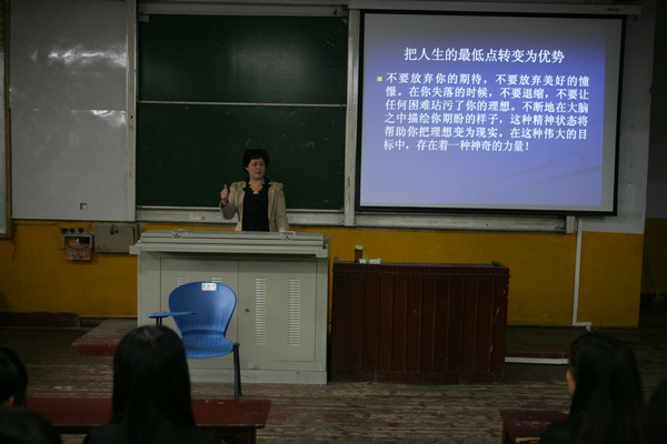 2012年5月23日下午美加墨世界杯官方网站在毕业班学生中开展了一场名为《超越自我成就梦想》的专题讲座,主讲人为美加墨世界杯官方网站党委书记贾秀英老师。