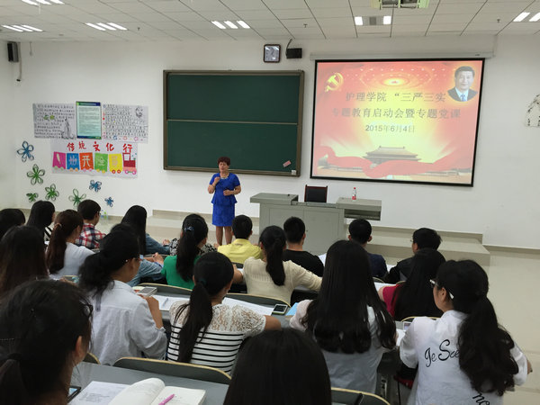 随后贾秀英书记又以“坚定理想信念、践行‘三严三实’”为题上了一堂生动而又深刻的专题教育党课。贾秀英书记从“三严三实”的提出时间和过程入手,着重论述了“三严三实”的精神要义和实质内涵;强调了修身律己、实在做事、老实为人的深刻内涵及重要意义,深入阐释了“三严三实”要求做人做事与权力责任之间的关系。并号召全院师生党员要学深悟透此次专题教育活动精神,进一步统一思想、以“三严三实”的标准严格要求自身,贯彻落实到各项工作、学习中,特别是明年的护理专业认证工作,要把专业认证当作学院发展的良好机遇,齐心协力将美加墨世界杯官方网站规划好、发展好。践行“诚于己,忠于群,敬往思来”的校训,做无愧于“贵医人”称号的贵医人。为实现我校“建设成为具有明显特色、西部一流、在全国有一定影响的高水平医科大学”的目标作出应有的贡献。