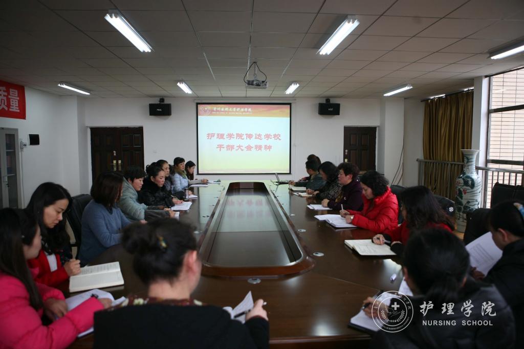 美加墨世界杯官方网站党委书记兼院长贾秀英同志传达了学校党委书记林昌虎同志题为《把握形势提升内涵抓变观念全面提升各方面质量》和校长何志旭同志题为《提升内涵建设和双一流建设》的重要讲话,传达了“十三五”规划第二年学校党委“十大工作”和党委副书记吕保平同志对贯彻落实学校干部大会精神提出的要求。
