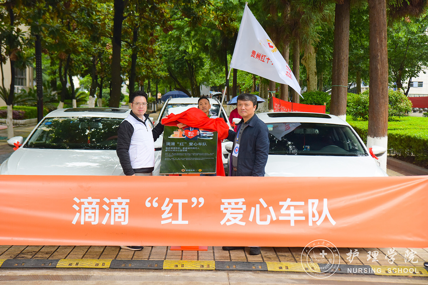 出席活动的领导左定超、李朝卉等向“贵州红十字‘滴滴红’爱心车队”“贵州红十字志愿护理服务队”“贵州省红十字会捐献造血干细胞志愿服务支队”授旗。省红十字会接受了爱心企业的捐赠。