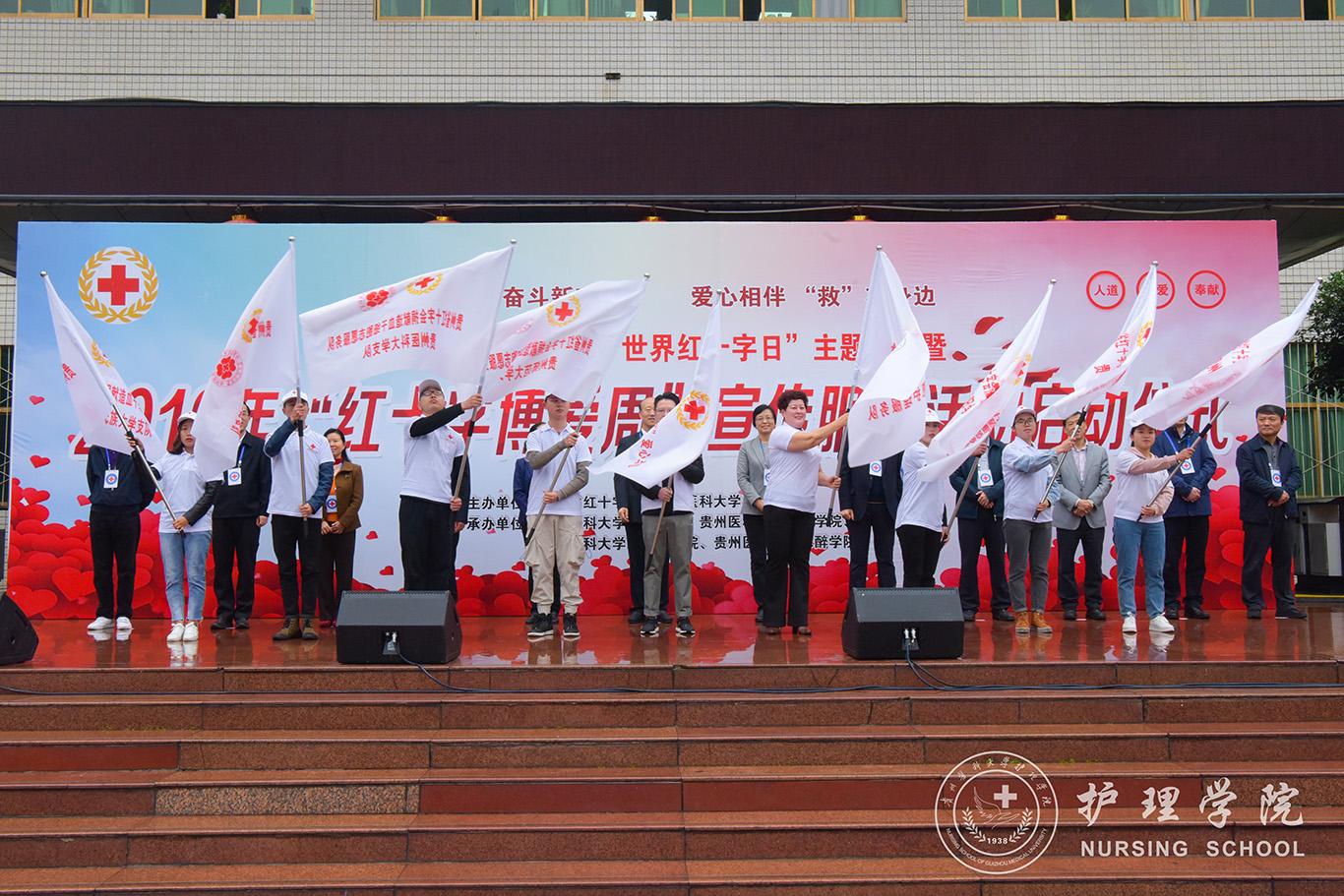 5月7日,贵州省纪念第72个“世界红十字日”主题活动暨2019年“红十字博爱周”宣传服务活动启动仪式在我校北校区行政楼前广场举行。省政协副主席、省红十字会名誉副会长左定超,省委宣传部副部长、省文明办主任、省红十字会副会长李朝卉,省红十字会党组书记、常务副会长尹秋莲,省民政厅副厅长、省红十字会副会长张惠明,省外事办副主任、省红十字会副会长许学凡,省红十字会副会长何淑平,省红十字会秘书长邓守权,校领导林昌虎、刘健、战勇、李海洋出席活动。省红十字会工作人员、爱心企业、美加墨世界杯官方网站红十字会志愿者及美加墨世界杯官方网站、临床医学院、麻醉学院师生代表600余人参加。