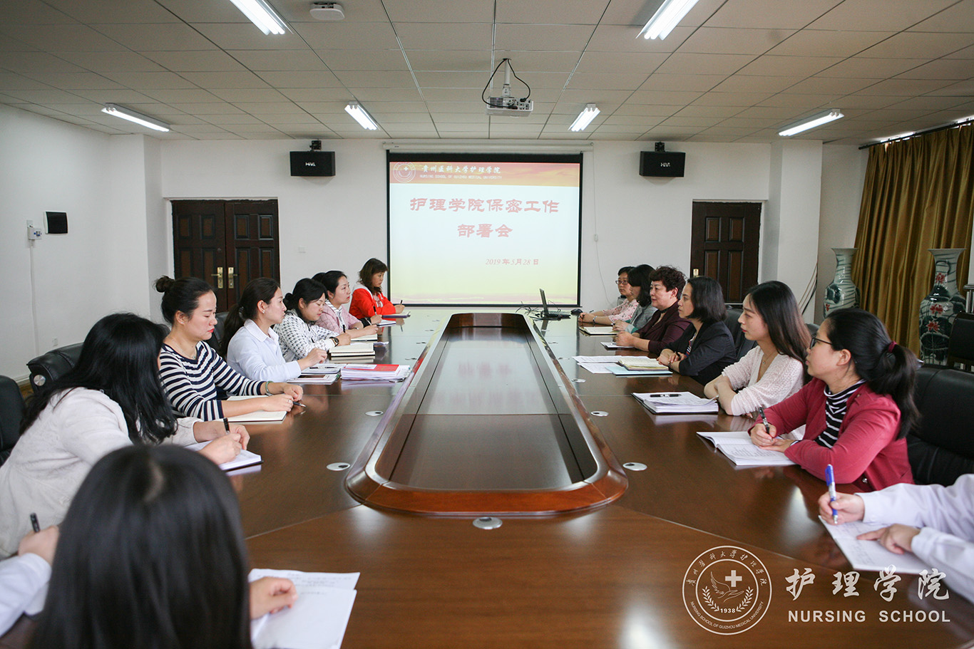 贾秀英传达了全省2019年保密工作会议精神以及学校党委书记林昌虎在学校保密工作会议上的讲话。学习了上级有关文件精神,通报了有关保密警示教育案例,总结部署了学院保密工作。