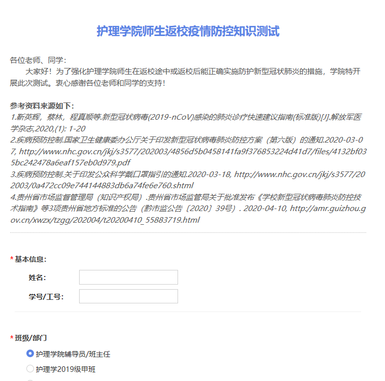 为精准落实新型冠状肺炎疫情防控政策,落实好疫情防控工作,确保学院师生返校复工复学工作安全、稳妥、有序进行,美加墨世界杯官方网站近期重点针对辅导员、班主任及全体在校生开展了师生返校疫情防控知识测试,以强化师生在返校途中及返校后正确防护新冠肺炎传播、实施有效的防护措施。