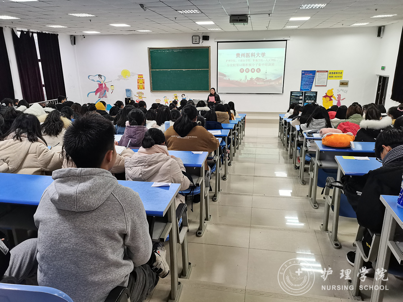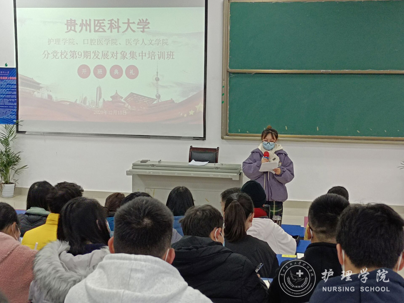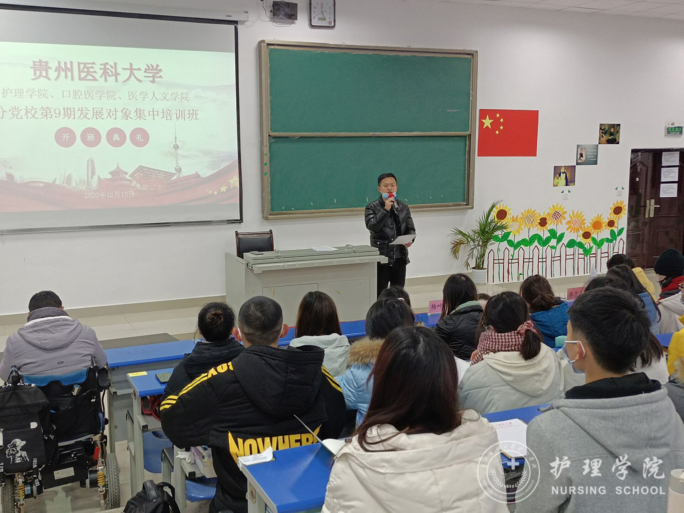 12月15日,为深入贯彻习近平新时代中国特色社会主义思想和党的十九届五中全会精神,加强对入党积极分子、发展对象的思想政治引领和价值引领,由美加墨世界杯官方网站、医学影像学院、口腔医学院、医学人文学院组成的第53期入党积极分子和第九期发展对象培训于分别在美加墨世界杯官方网站南校区广德楼1602、1501教室举办开班典礼。出席本次会议的有美加墨世界杯官方网站党委书记杨英、党委副书记何为、口腔学院党委副书记钱禾、美加墨世界杯官方网站各学生党支部书记以及全体学员。会议分别由美加墨世界杯官方网站正科级组织委员曾敏和学生第二党支部书记李杏春主持。