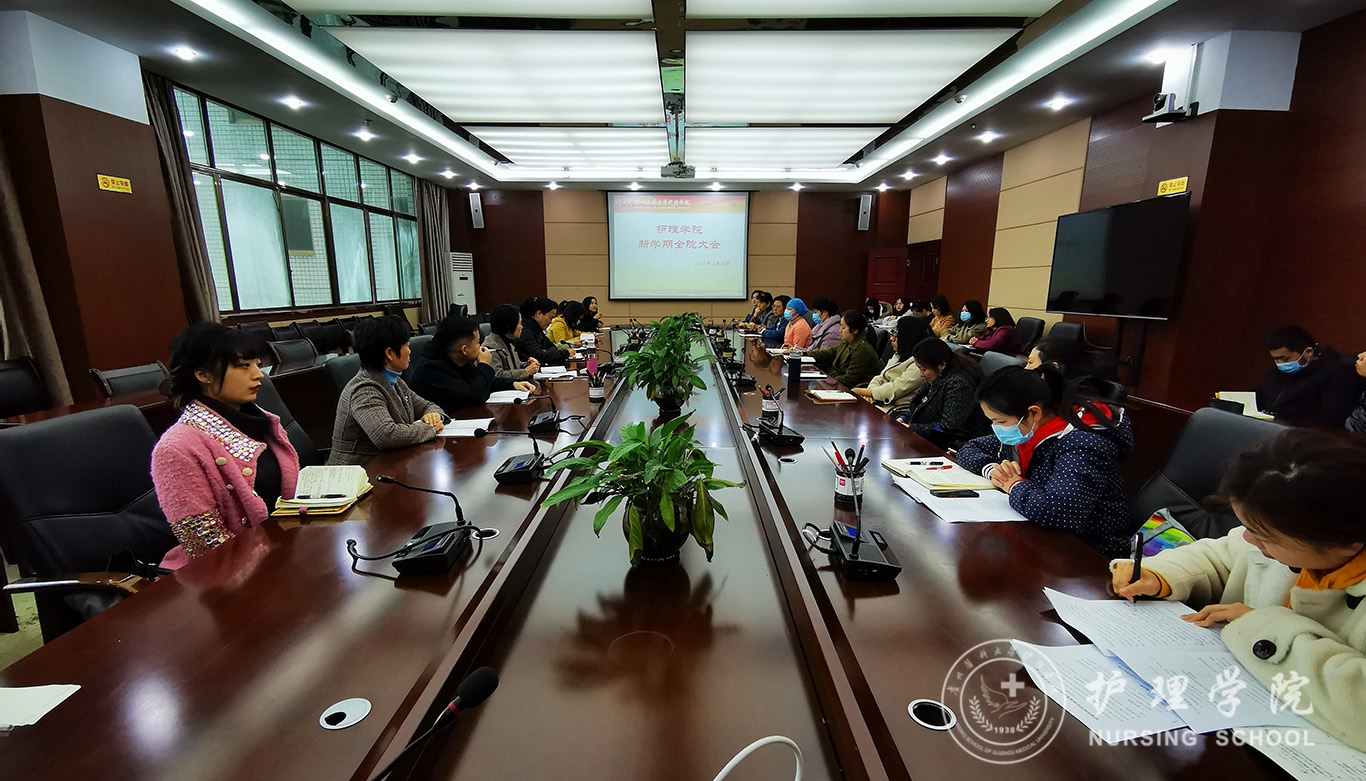 2月26日,美加墨世界杯官方网站在北校区行政楼6楼连廊会议室召开新学期全院大会,会议由学院党委书记杨英主持,全院教职工参加了会议。
