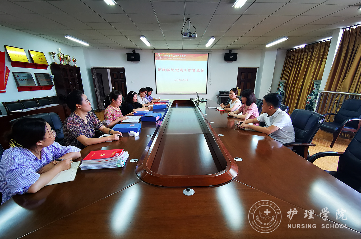 为推进学院党建工作,落实好全面从严治党主体责任和“五级书记抓党建”工作,巩固深化“不忘初心、牢记使命”主题教育成果,提高党务工作者业务能力。7月14日,美加墨世界杯官方网站在南校区百川楼五楼会议室召开党建工作督查会,学院党委书记杨英、副书记何为、副院长刘志燕、副处级组织员张黎、正科级组织员、综合办公室副主任、各党支部书记参会。