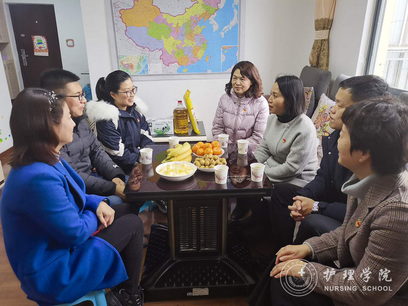 12月9日,美加墨世界杯官方网站党委书记杨英一行到学生科副科长毕丽同志家中开展了政治家访,了解教职工的思想动态、家庭家风、家庭困难、意见建议等情况,持续强化“八小时外”的监督管理。院党委副书记兼纪委书记何为,副院长刘志燕、王秀红,副处级组织员张黎,综合办公室副主任李颖参加了家访活动。