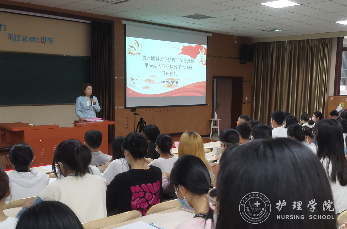 4月25日,美加墨世界杯官方网站分党校第56期入党积极分子培训班开班典礼在百川楼1101教室举行。美加墨世界杯官方网站党委书记兼分党校校长杨英、党委副书记兼分党校副校长何为、副处级组织员张黎、辅导员刘文壮及211名学员参加,开班典礼采取线上线下方式进行,由何为主持。