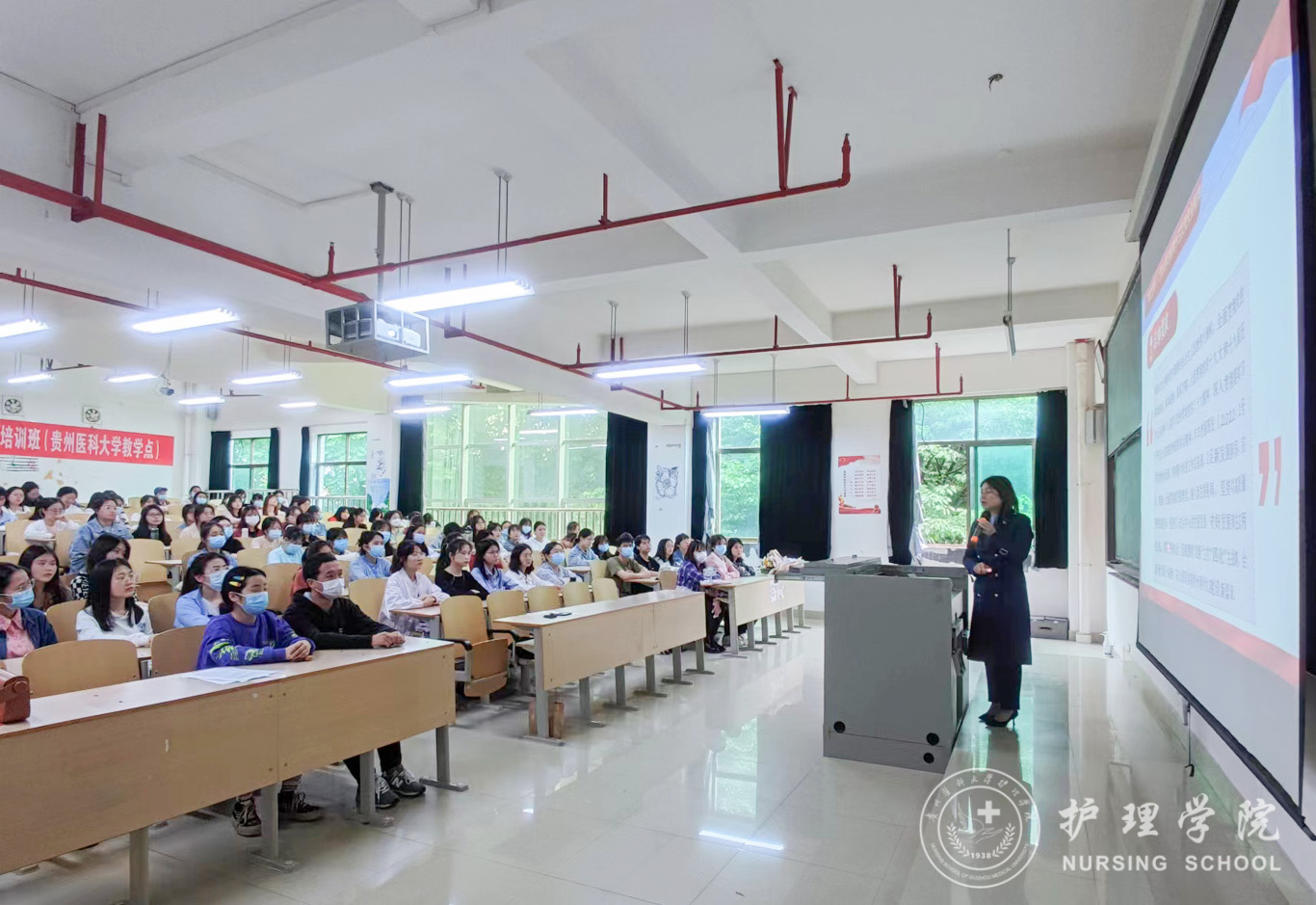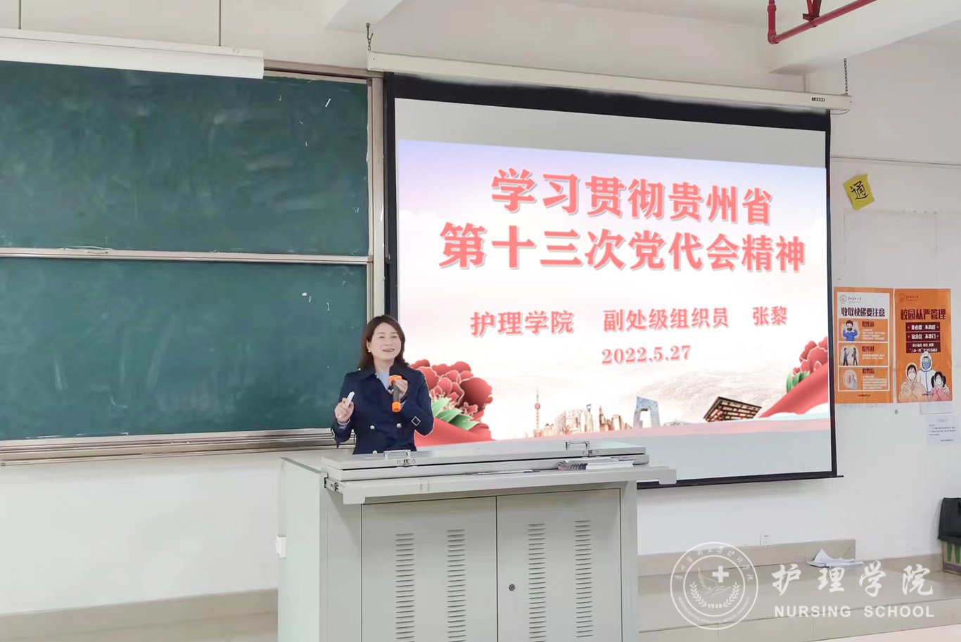 5月27日,为深入学习贯彻中国共产党贵州省第十三次代表大会精神,美加墨世界杯官方网站党委委员、副处级组织员张黎在北校区4201教室为护理学2019级甲班和学院第12期发展对象培训班学员进行了大会精神宣讲。