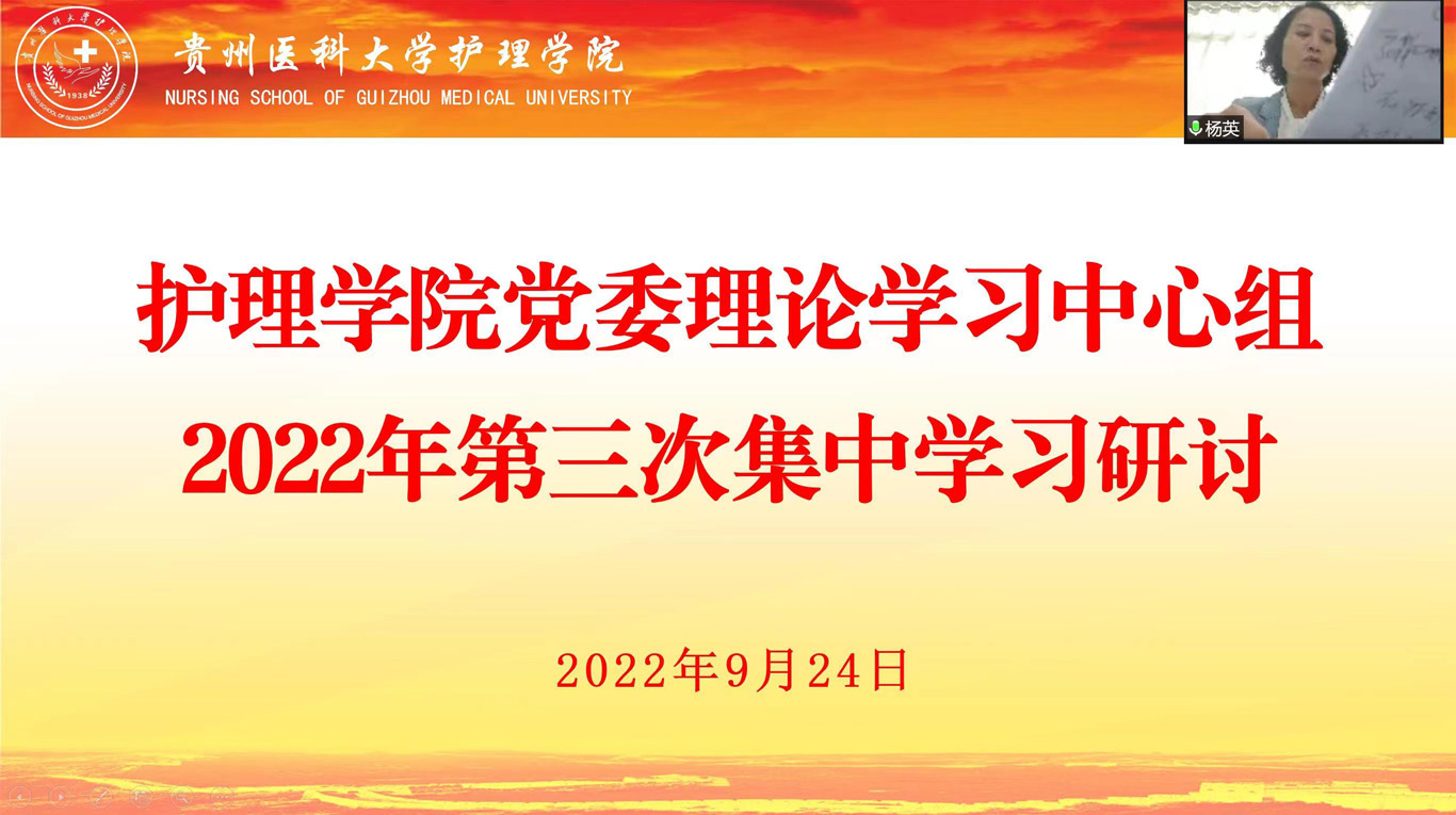9月24日,美加墨世界杯官方网站通过线上方式开展党委理论学习中心组2022年第三次集中学习研讨,院领导班子成员、副科级以上干部、各党支部书记和辅导员参加,会议由院党委书记杨英主持。