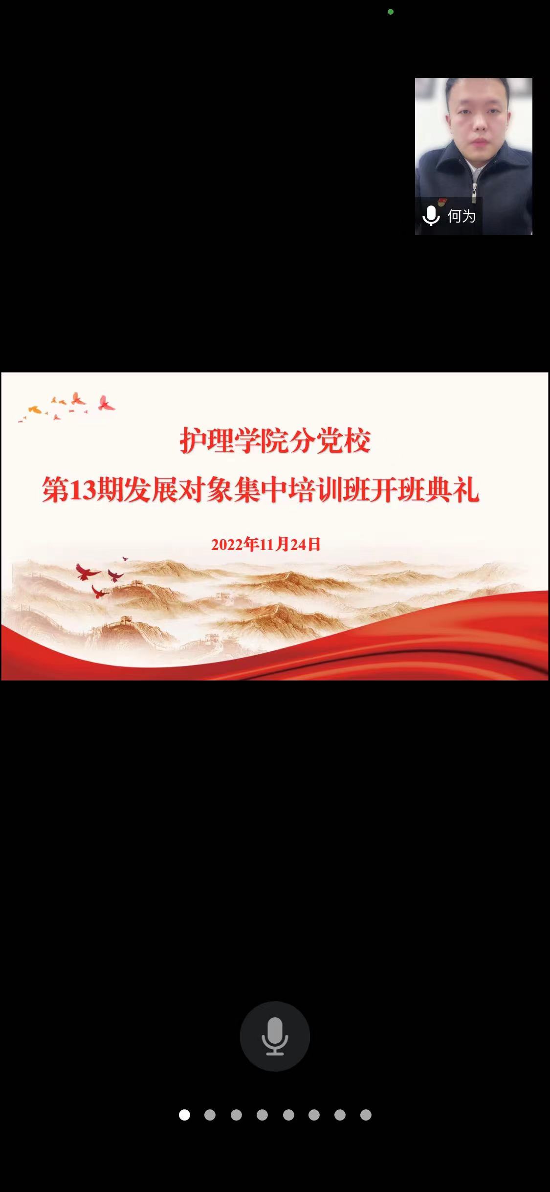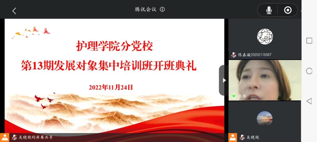 11月25日,为深入学习宣传贯彻党的二十大精神,加强发展对象的教育培训,切实提高其政治素养,端正入党动机。美加墨世界杯官方网站分党校通过线上的方式开展了第十三期发展对象集中培训班开班典礼。出席本次会议的有美加墨世界杯官方网站党委副书记兼纪委书记何为、美加墨世界杯官方网站副处级组织员张黎、班主任吴晓艳以及全体学员。会议由美加墨世界杯官方网站正科级组织员曾敏主持。