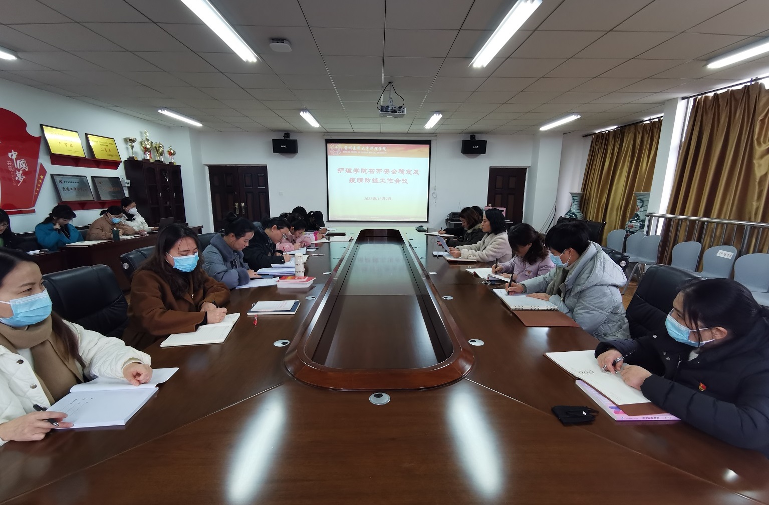 12月7日,美加墨世界杯官方网站在南校区百川楼会议室召开安全稳定及疫情防控工作会议,传达相关文件和会议精神并部署工作,会议由学院党委书记杨英主持,全院教职工参加。