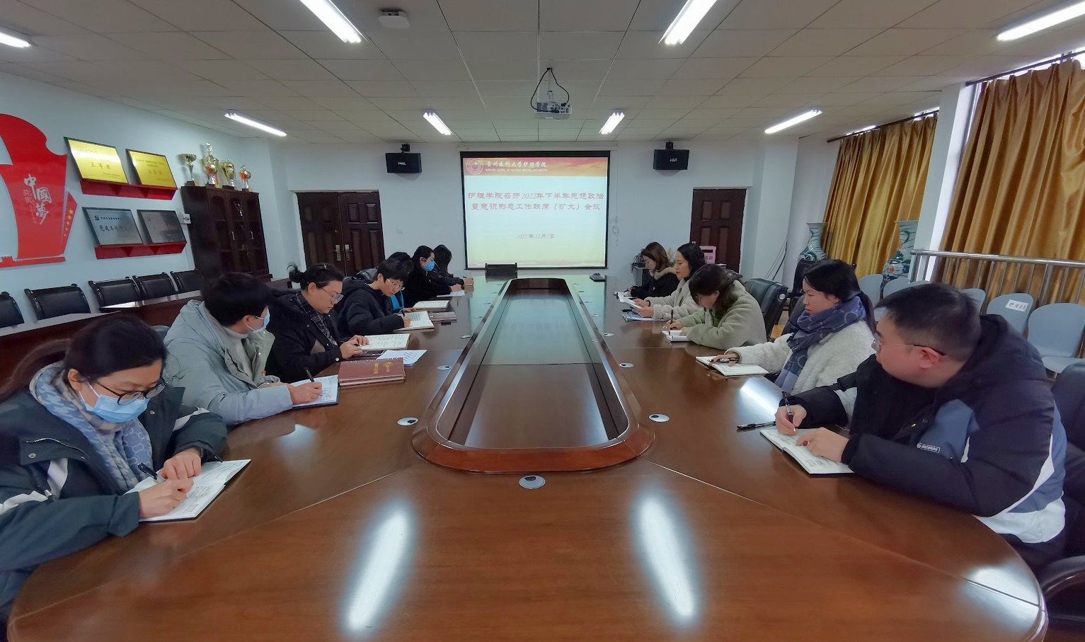 12月7日,美加墨世界杯官方网站在南校区百川楼五楼会议室召开思想政治暨意识形态工作联席(扩大)会议。会议由学院党委书记杨英主持,学院党政领导班子、副科级以上干部、各党支部书记和全体辅导员参会。