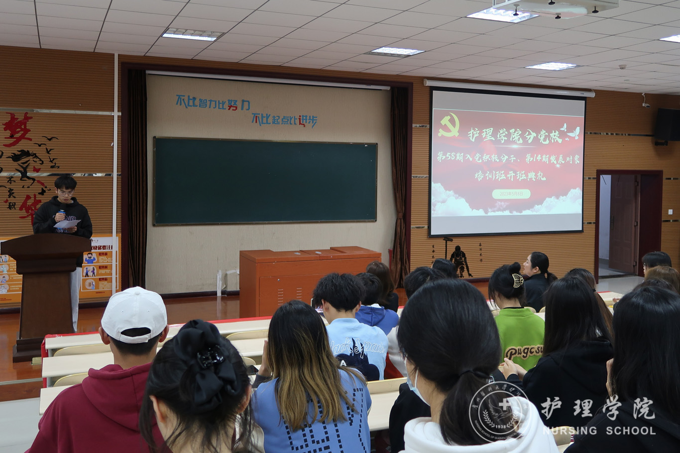 首先由第58期入党积极分子吴追和第14期党员发展对象韦忠微作为学员代表发言,两位学员都表示自己将会更好的提升和完善自己,积极向党组织靠拢,端正入党动机,把自己锻炼成符合党和人民期望的合格社会主义建设者和接班人。随后张黎宣读了学员须知。最后杨英对本次培训班学员提出三点希望:希望学员深入学习贯彻习近平新时代中国特色社会主义思想,端正学习态度,端正入党动机,在学习、工作、生活等方面积极发挥先锋模范作用。