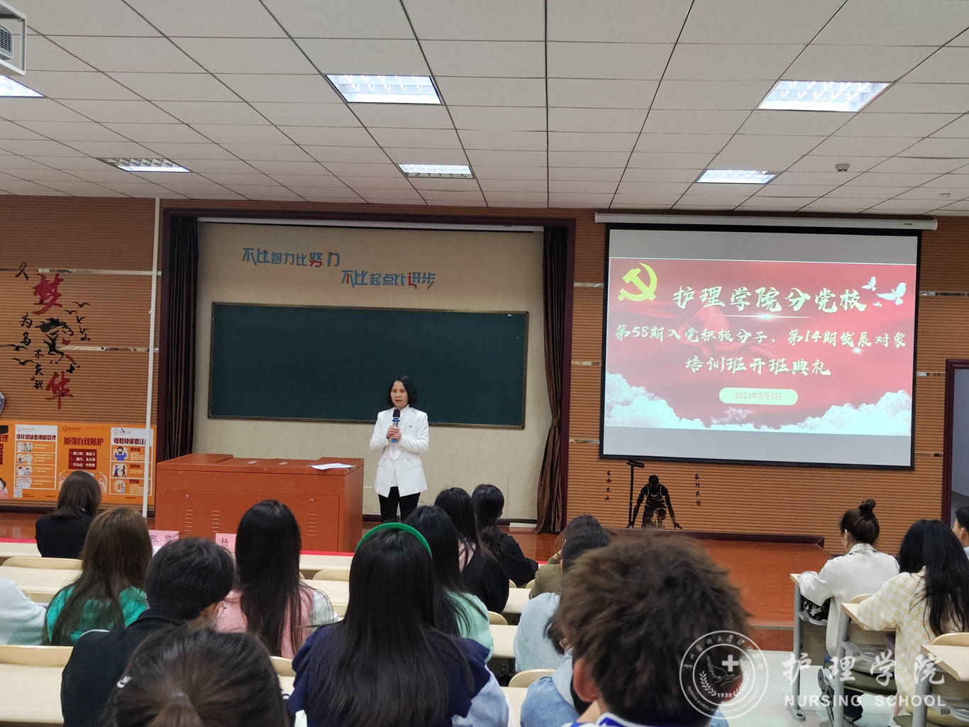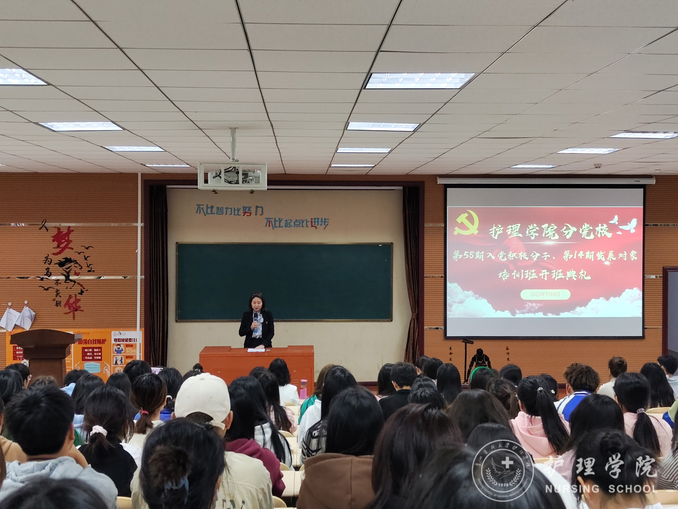 为深入学习贯彻习近平新时代中国特色社会主义思想,切实抓好党员发展对象教育工作,提升青年学子党性修养和政治素质,5月8日,美加墨世界杯官方网站分党校在百川楼1101教室举办第58期入党积极分子和第14期党员发展对象培训班开班典礼。美加墨世界杯官方网站党委书记杨英 、副处级组织员张黎、学生第三党支部书记刘妍及205名学员参加本次开班仪式,由正科级组织员曾敏主持。