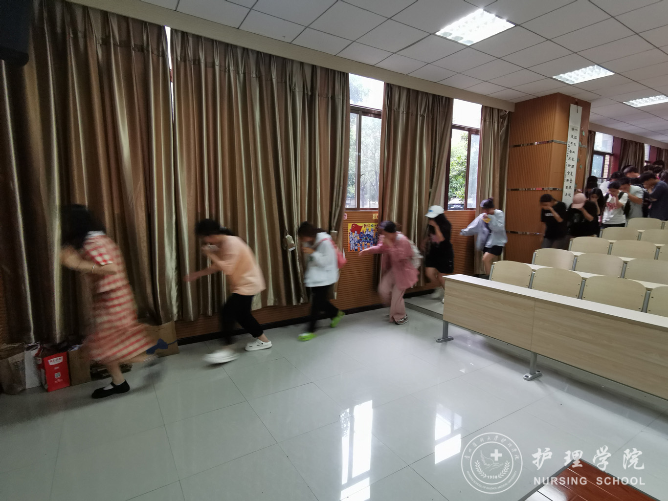 讲座中,叶佳乾教员通过照片及视频以案说法、以案示警,使参训师生深刻体会到火灾事故的危害性和学习消防安全知识的重要性。同时,叶佳乾教员通过现场演示与互动,深入浅出地介绍了火灾报警的要点,容易引发火灾的消防安全隐患,高楼发生火灾自救方法,电器设施、设备使用注意事项,干粉灭火器和水基灭火器正确使用方法,火灾应急疏散、地震疏散等安全知识,并组织进行了疏散演练。