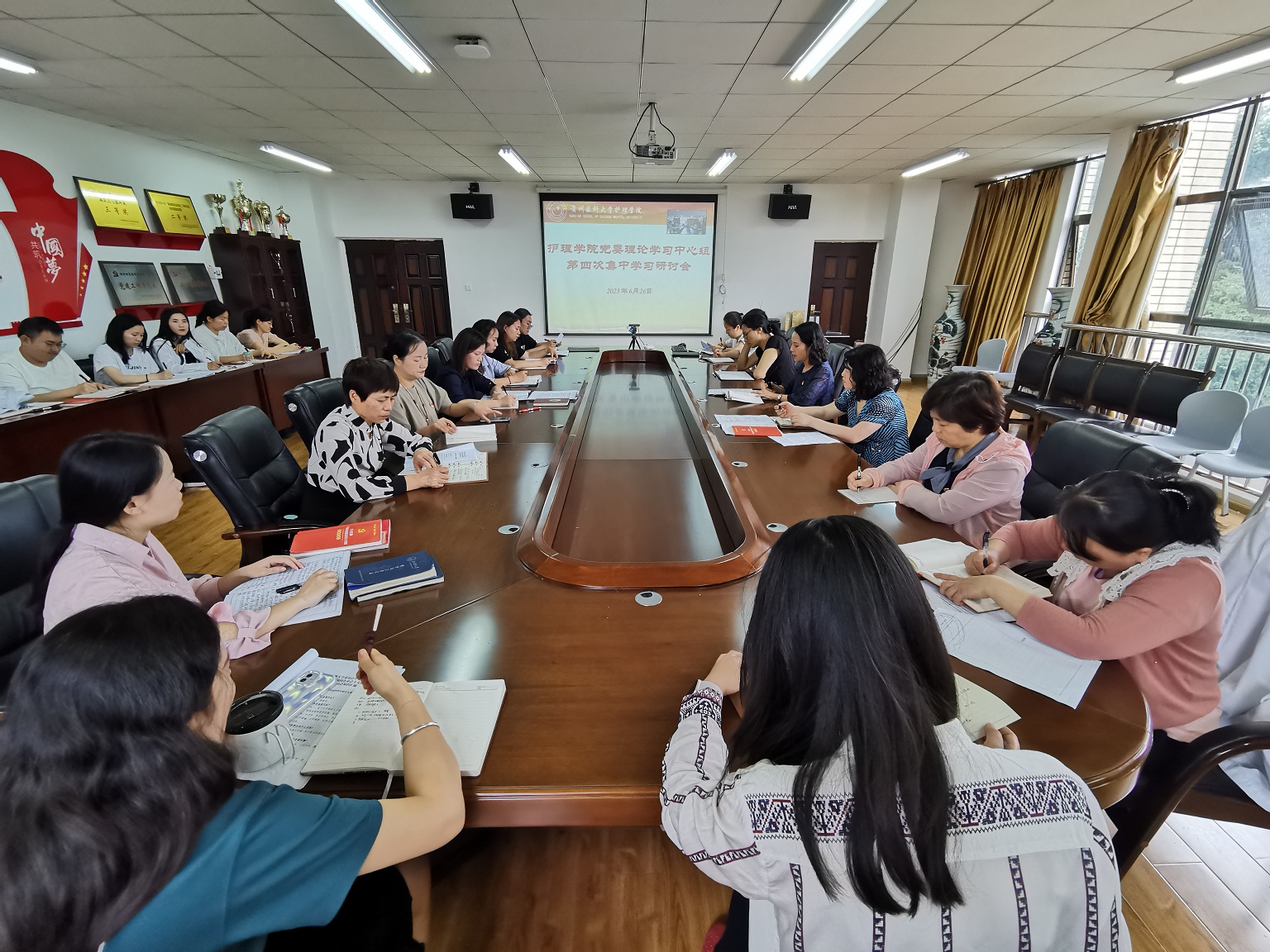6月26日,美加墨世界杯官方网站在南校区百川楼五楼会议室开展党委理论学习中心组第四次集中学习研讨,院党委委员、副科级以上干部、党支部书记和全体辅导员参加,会议由学院党委书记杨英主持。