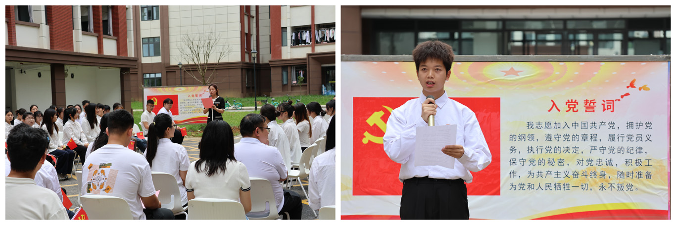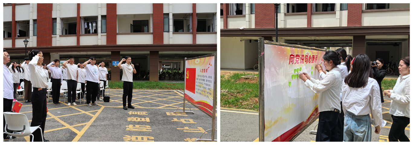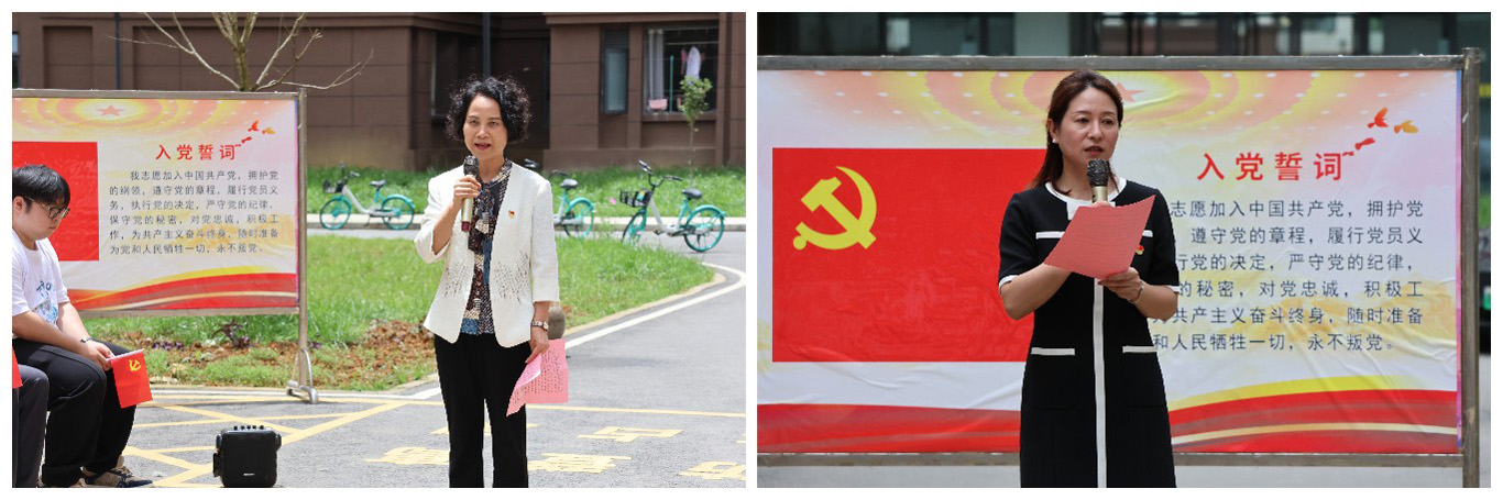 7月1日,为庆祝中国共产党成立104周年,深化学院-社区党建合作。美加墨世界杯官方网站与马场镇七星湖社区在云漫湖校区联合举办“青春心向党 誓言筑忠诚 奋进新征程”党建联建活动。美加墨世界杯官方网站党委书记杨英、党委副书记兼纪委书记何为等学院领导、师生党员,与七星湖社区党支部书记王朝松、妇联主席黄薇等社区代表齐聚一堂,以红色初心共赴这场特殊的“生日之约”,活动由美加墨世界杯官方网站副处级组织员张黎主持。