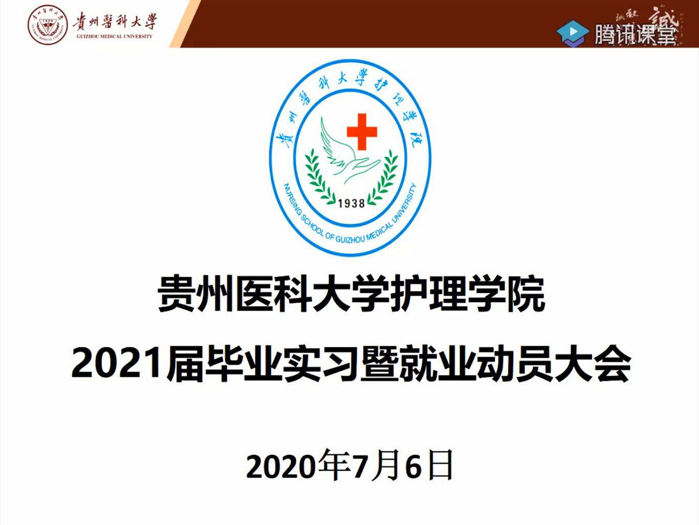 7月6日,美加墨世界杯官方网站通过腾讯课堂召开了2021届护生毕业实习暨就业动员大会。美加墨世界杯官方网站党委书记杨英、党委副书记王秀红、副院长刘志燕,2017级本科、专升本辅导员及2017级护理本科、专升本全体同学550余人参加了动员大会。会议由美加墨世界杯官方网站生产实习科科长柳忠燕主持。