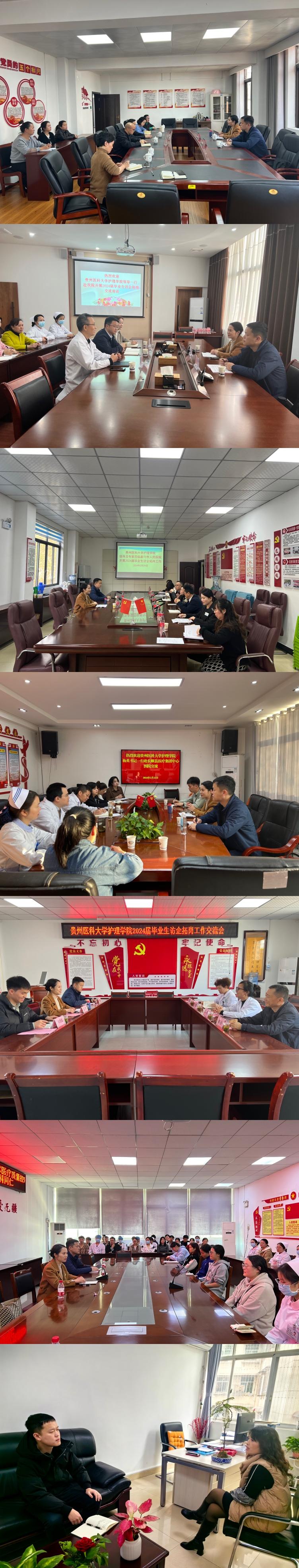 在此次访企拓岗工作中,工作组走访了黔南州人民医院、黔南州中医院、都匀市人民医院、长顺县医疗集团中心医院、惠水县人民医院、通用医疗贵阳三00医院,深入了解医院招聘需求、工作环境以及未来发展趋势等信息。在黔南州人民医院,工作组组织实习生召开了座谈会,与世界杯官网实习生开展了亲切交谈,深入了解学生的实习动态。此次走访旨在与就业单位进行沟通交流,拓宽就业渠道,同时对实习生进行引导和鼓励,更加深入地了解行业对人才的需求,为下一步的教育教学改革提供了坚实的基础和保障,也为今后美加墨世界杯官方网站的人才培养质量和就业质量的提高指明了方向。