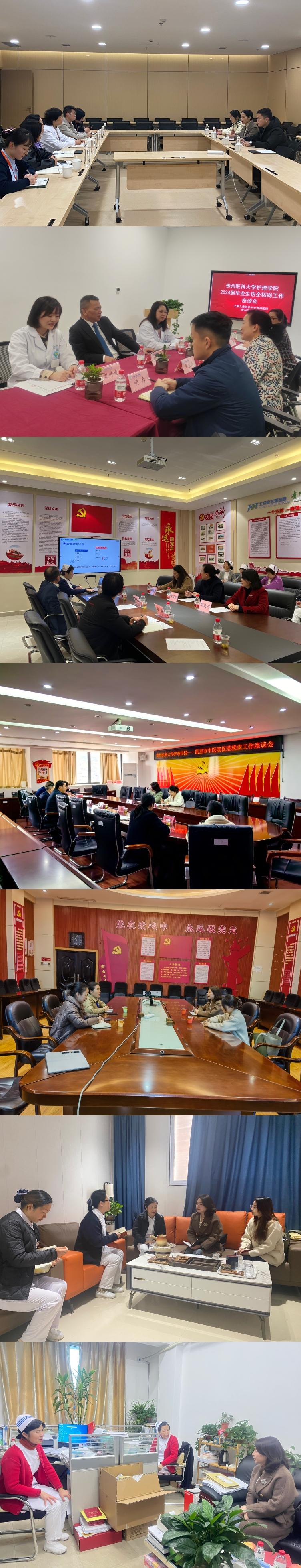 在此次访企拓岗工作中,工作组先后走访了北京积水潭医院贵州医院、大秦肿瘤医院、凯里市中医院、黔东南州中医院、黔东南州人民医院、美加墨世界杯官方网站第二附属医院、上海儿童医学中心贵州医院、广州市红十字会医院。在走访过程中,工作组与走访的相关医院负责人进行座谈,负责人详细介绍了医院的基本情况、未来规划和用人需求,表达了与学院长期合作的意愿。工作组对学院办学特色、学科建设、人才培养质量和2024届毕业生相关情况做了详细介绍。双方围绕人才培养、单位用人需求、实习基地建设等问题进行了深入研讨。