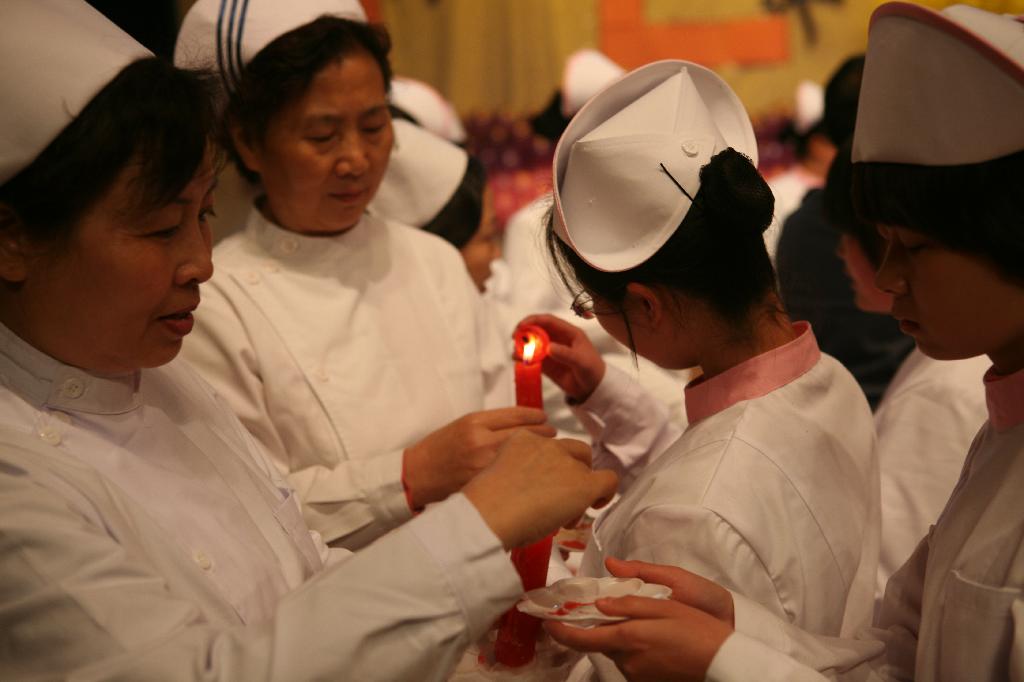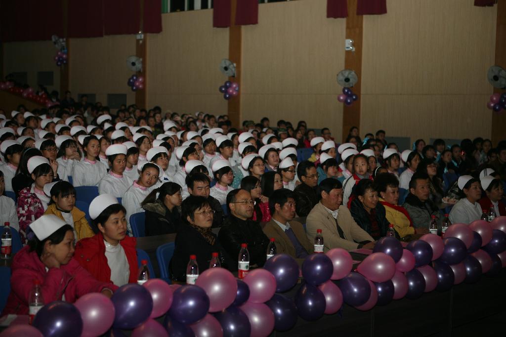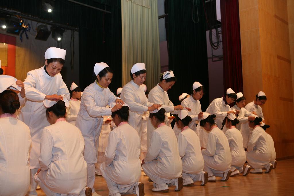 仪式上,护理前辈及专家为同学们戴上圣洁的燕帽,点燃象征着南丁格尔精神代代相传的蜡烛,并在党委书记贾秀英同志的带领下进行了宣誓。仪式之后是一台精彩纷呈的文艺晚会,优美的舞蹈、感人的手语操、幽默的小品、真打实斗的中国功夫等,一次次把晚会气氛推向高潮。