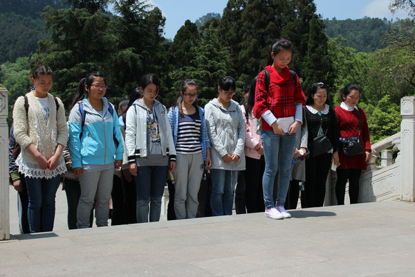 上午9点,同学们就集合前往黔灵山公园。经过一个多小时的车程后,到达目的地。首先,同学们参观了张学良关押旧址---麒麟洞。然后来到黔灵湖旁的英雄纪念碑,一名同学作为学生代表向先烈们表达了敬意,同学们深切感受到今天的幸福生活来之不易。依次成排,举起右手,怀着沉重肃穆的心情,向革命先烈宣誓并默哀3分钟,以实际行动表达对他们的悼念与敬仰之情。