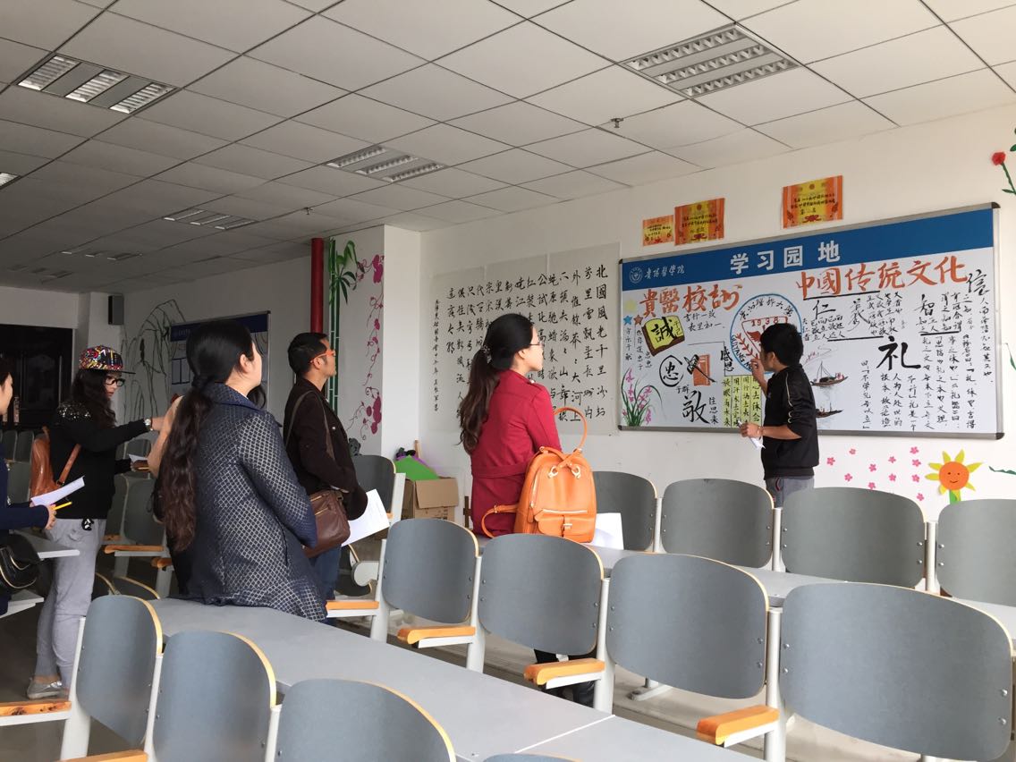 4月20日中午12:00,美加墨世界杯官方网站在各班开展“为弘中华传统文化,护中华瑰宝,展学子之风”班级教室文化墙评比活动。担任此次评委的有美加墨世界杯官方网站学生科科长曾敏、学生第一党支部书记李海林、学生第二党支部书记王晓玲、辅导员毕丽四位老师。