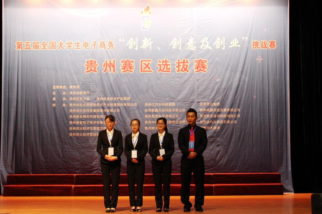6月18日,第五届全国大学生电子商务”创新、创意及创业”挑战赛贵州赛区选拔赛在贵州师范大学宝山校区隆重举行。美加墨世界杯官方网站12级本科班4名同学经过层层选拔,有幸作为我校其中一支参赛队参加现场选拔赛。