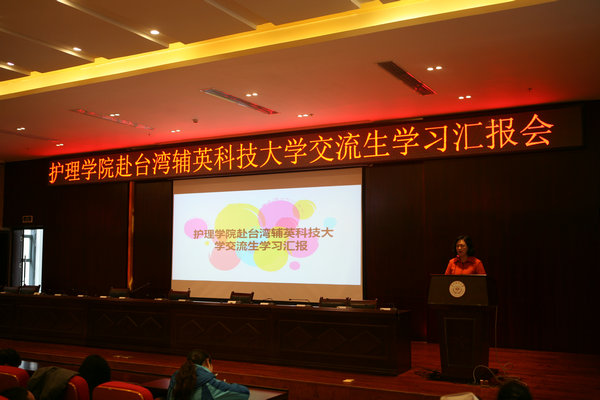 2016年3月9日,美加墨世界杯官方网站在南校区道德讲堂举行赴台湾辅英科技大学交流生学习汇报会。参加本次会议的有美加墨世界杯官方网站党委副书记杨英、副院长郭永洪、分团委书记金晶、学生管理科科长曾敏、教研室老师、辅导员以及2014级、2015级全体同学。本次会议由曾敏主持。