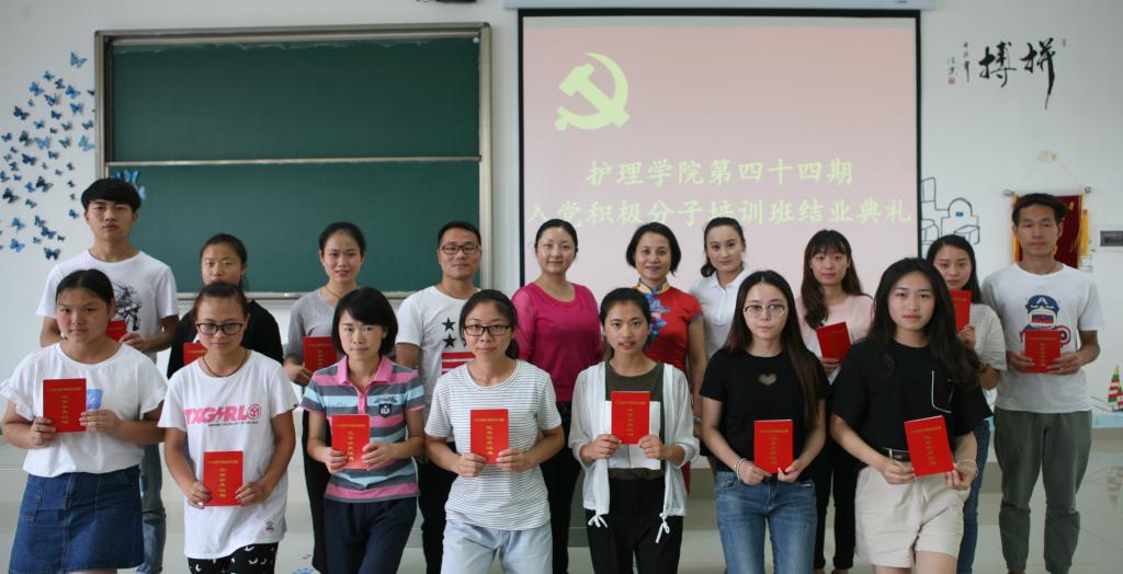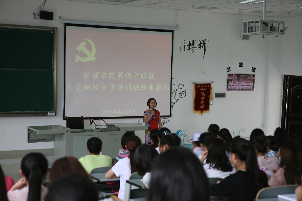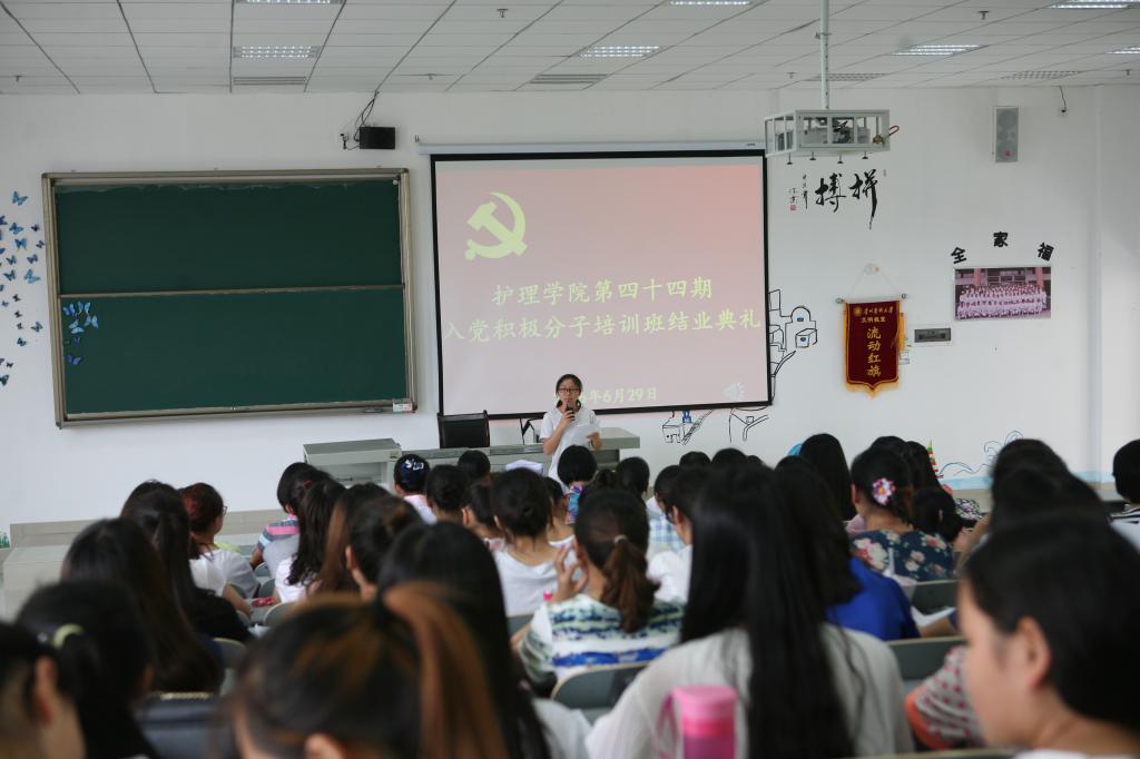 6月29日,美加墨世界杯官方网站第四十四期入党积极分子培训班结业典礼在X7205教室举行,美加墨世界杯官方网站党委副书记杨英、学生科科长曾敏、综合办公室副主任张常喜、学生党支部书记李海林、王晓玲及131名学员参加了典礼。典礼由王晓玲老师主持。