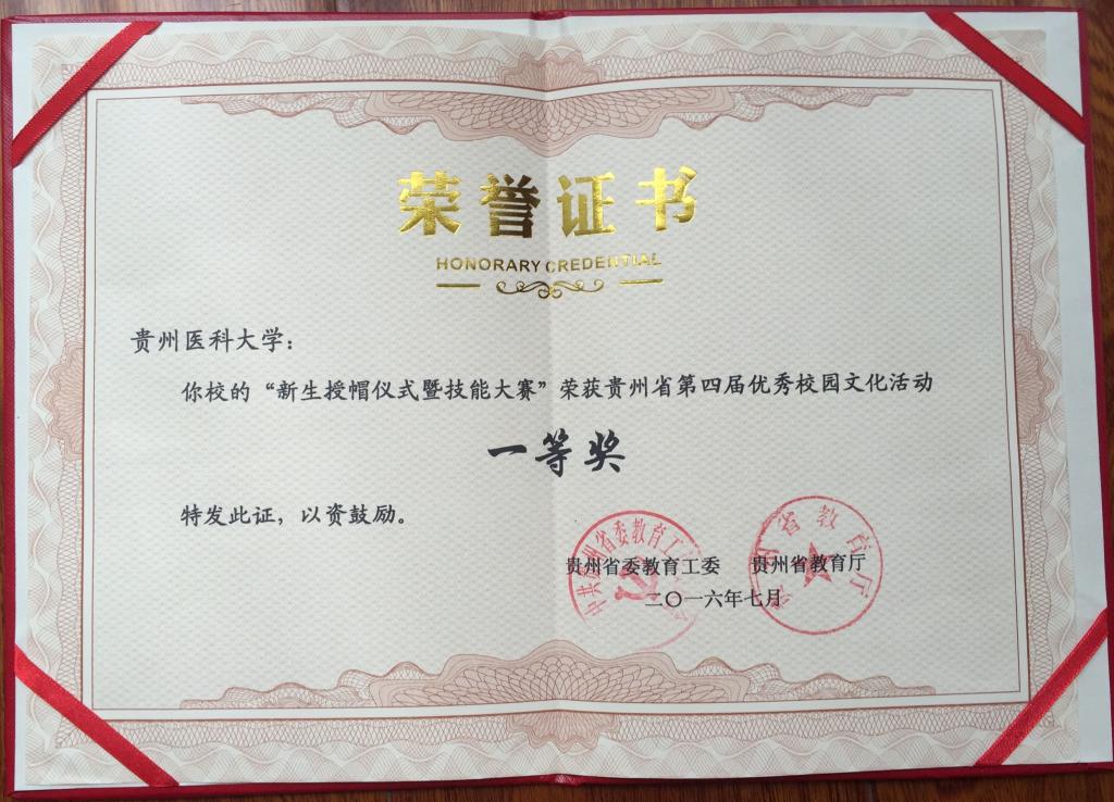 在贵州省教育工委、贵州省教育厅举办的第四届高校优秀校园文化活动成果评选中,世界杯官网《二十余载烛火传承培育黔地护理英才》申报材料荣获一等奖。材料充分展示了世界杯官网在结合专业特色,坚持二十余年开展新生授帽仪式及技能大赛的风采,同时体现了世界杯官网多年来培育了一大批护理人才,在服务贵州、建设贵州,为我省医疗事业发展所做出的贡献。