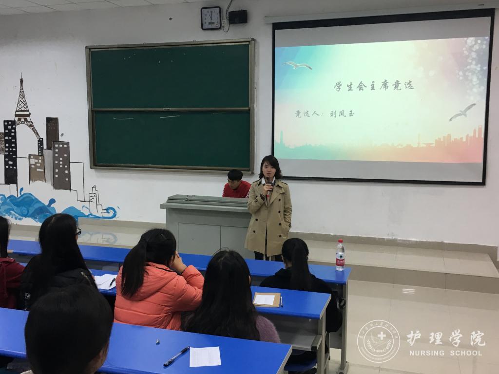 11月7日晚6:20,美加墨世界杯官方网站学生会在1404教室举行了一年一度的学生会换届选举大会。出席本次选举大会的有美加墨世界杯官方网站分团委书记金晶及辅导员毕丽、李颖三位老师,部分学生会成员也参与其中。本次大会由14级助产班李双苹同学主持。