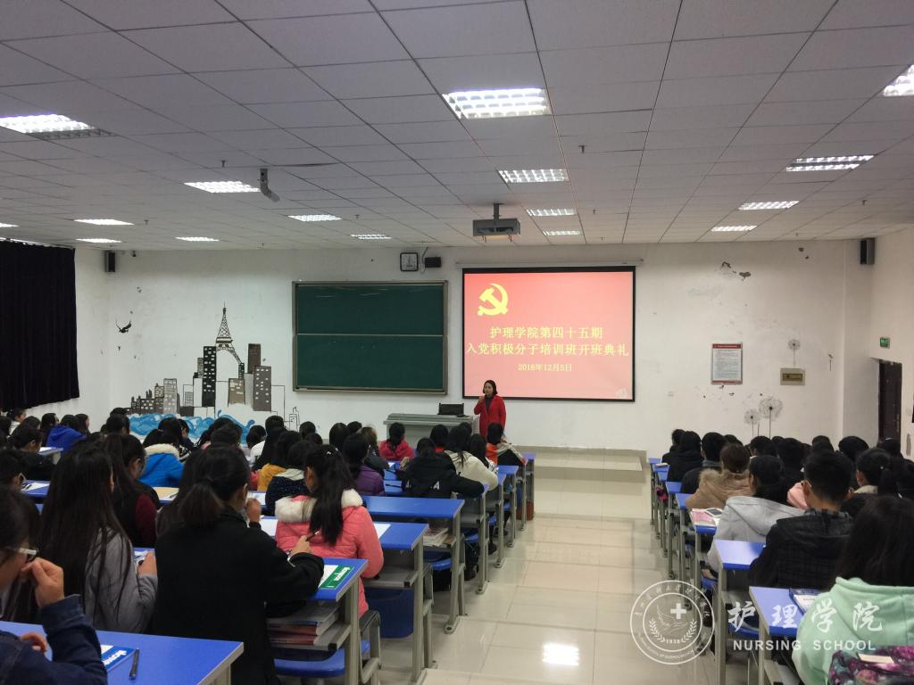 12月5日下午,美加墨世界杯官方网站在南校区1404教室召开了第45期入党积极分子培训班开班典礼,美加墨世界杯官方网站党委副书记杨英、美加墨世界杯官方网站教工党支部支委毕丽、美加墨世界杯官方网站学生第一党支部书记李颖和133名入党积极分子参加了活动。