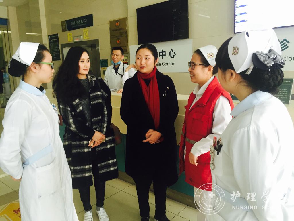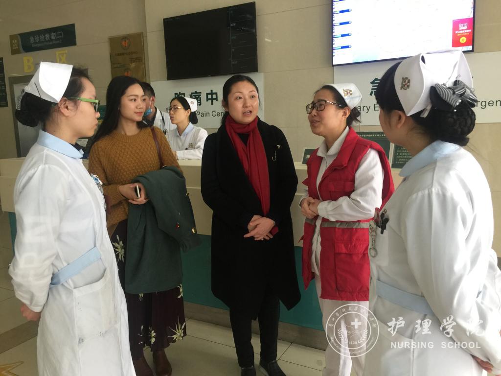12月12日,美加墨世界杯官方网站学生科科长曾敏、分团委书记金晶及毕业班辅导员王晓玲一行三人赴苏州九龙医院看望实习生,并同护理部老师进行了座谈。