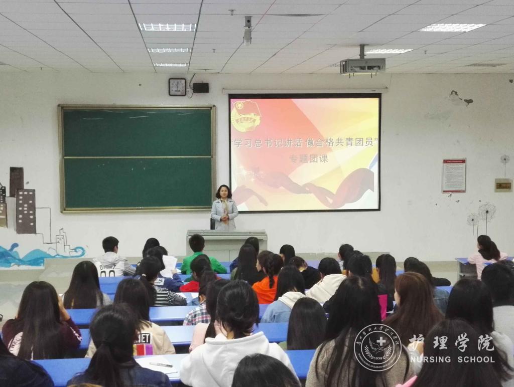 首先杨英为大家上了题为《交人生满意答卷,做合格共青团员》的精彩团课,杨英提出要想为自己的人生交出满意答卷需做到以下几点:一是广大青年团员要经常自省,善于发现自己的缺点及时改正;二是善于管理自身情绪,不断提升自己的情商;三是传播正能量,用正能量影响身边的同学;四是主动学、愿意学,永葆先进共青团员本色。接着,杨英分别从坚定理想信念、立志成才报国、树立社会竞争意识和创新发展意识等方面阐述了做一名合格共青团员的重要性。最后,杨英要求广大青年团员要勇做圆梦人,不做空想家,要为实现中国梦、护理梦而奋发向上,时刻以一名优秀共青团员的标准严格要求自己。