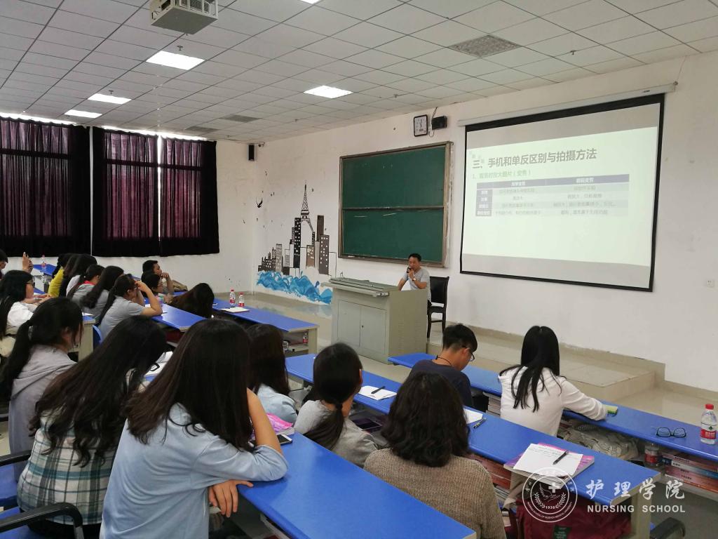 5月22日下午4:30,为进一步提高世界杯官网师生的摄影技术及新闻稿配图水平,美加墨世界杯官方网站在南校区1404教室举办摄影知识培训。此次,培训会由学校党委宣传部陈元书、美加墨世界杯官方网站综合办公室副主任张常喜以及护理学技能实验室陈瑜三位老师主讲。美加墨世界杯官方网站学生科科长曾敏、分团委负责人王晓玲、学生党支部书记李颖、辅导员毕丽,学生会各部门代表、各班班干以及摄影爱好者参加了本次活动。