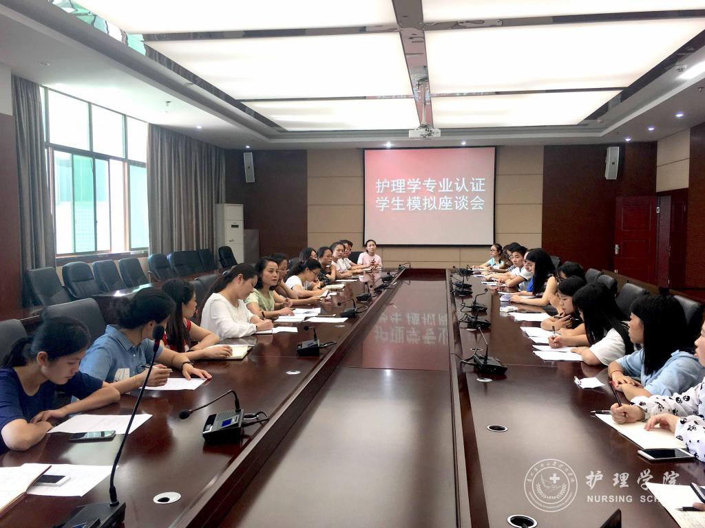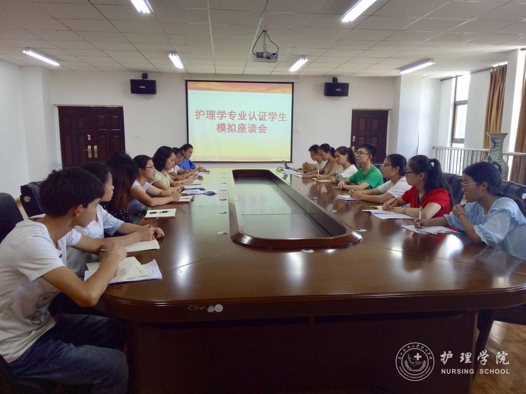 为了更好的促进世界杯官网专业认证工作,保证护理学专业认证工作的顺利进行, 6月7日、8日,美加墨世界杯官方网站分别在南北校区举行了护理学专业认证学生模拟座谈会,参加本次会议的有美加墨世界杯官方网站党委副书记杨英、学生科科长曾敏、专业老师代表徐锟、卢海霞、王芸芸、李红及各班辅导员和学生代表。会议由王晓玲老师主持。