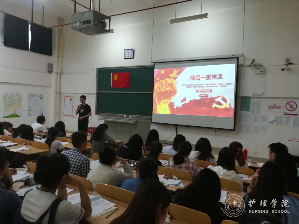 党课上,首先王晓玲对即将毕业的同学们表示衷心的祝贺,恭喜同学们经过四年的努力,顺利毕业。其次,她希望党员同学们要学会感恩:一要感恩母校,感恩母校四年的精心培育之情;二是感恩父母,感恩父母多年的养育之情;三是感恩社会,以最好的心态迎接新的环境,时刻传播正能量。王晓玲还强调,作为一名医学生党员,一定要将耐心、爱心、责任心融入到今后的学习、生活和工作中,充分发挥党员的先锋模范作用。随后,毕业生党员李浩代表发言,他道出了在院领导和老师们的关心下,茁壮地成长,表达了对母校的依依不舍之情。