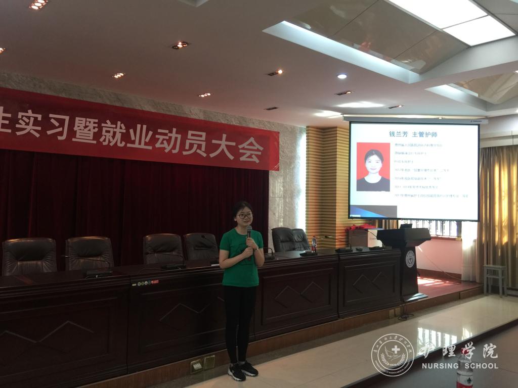 毕业实习是帮助同学们增强对社会的适应性,培养自身的实践能力,缩短从一名大学生到护理专业人员差距的重要环节,对其职业生涯规划起着关键性的作用。相信通过本次动员大会,同学们能更加全面的理解护理专业内涵,注重提升自身综合素养,为同学们今后的就业打下扎实的基础。