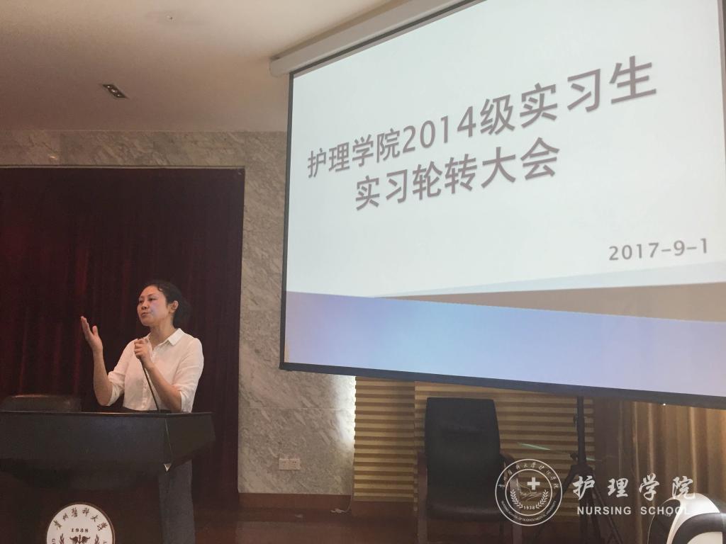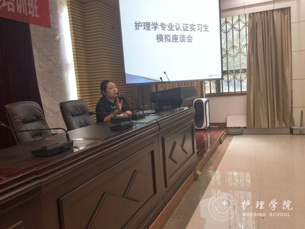 为保证护理学专业认证工作的顺利进行。9月1日,美加墨世界杯官方网站在北校区道德讲堂召开了实习生大会暨专业认证实习生模拟座谈会。美加墨世界杯官方网站副院长刘志燕、学生科科长曾敏、生产实习科科长柳忠燕、2014级辅导员李颖及全体贵阳地区实习生参加了本次会议。会议由李颖主持。