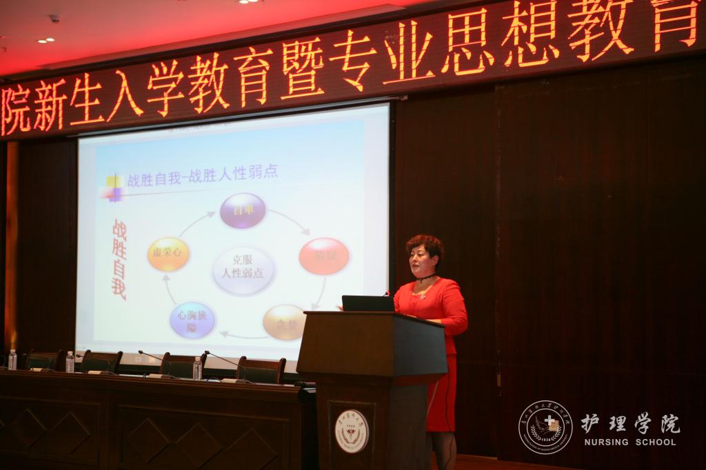 副院长刘志燕为2017级新生作了以专业思想教育为主题的讲座。刘志燕从护理学的内涵,护理学的专业培养目标、能力要求、知识要求等方面对新生进行专业思想教育,使新生对护理学专业有了基本的了解,对大学四年的专业学习有了初步的规划。