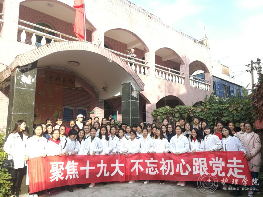 为深入学习贯彻党的十九大精神,营造积极健康、文明和谐的校园文化氛围,引导学生党员不忘初心跟党走,担当时代使命,为夺取新时代中国特色社会主义伟大胜利贡献力量。美加墨世界杯官方网站学生党支部策划了“聚焦十九大,不忘初心跟党走”系列主题活动。2017年11月11日,系列活动之“宣讲十九大 护理关爱行”在贵阳市云岩区康颐养老院开展, 50余名学生党员和发展对象代表参与了本次活动。