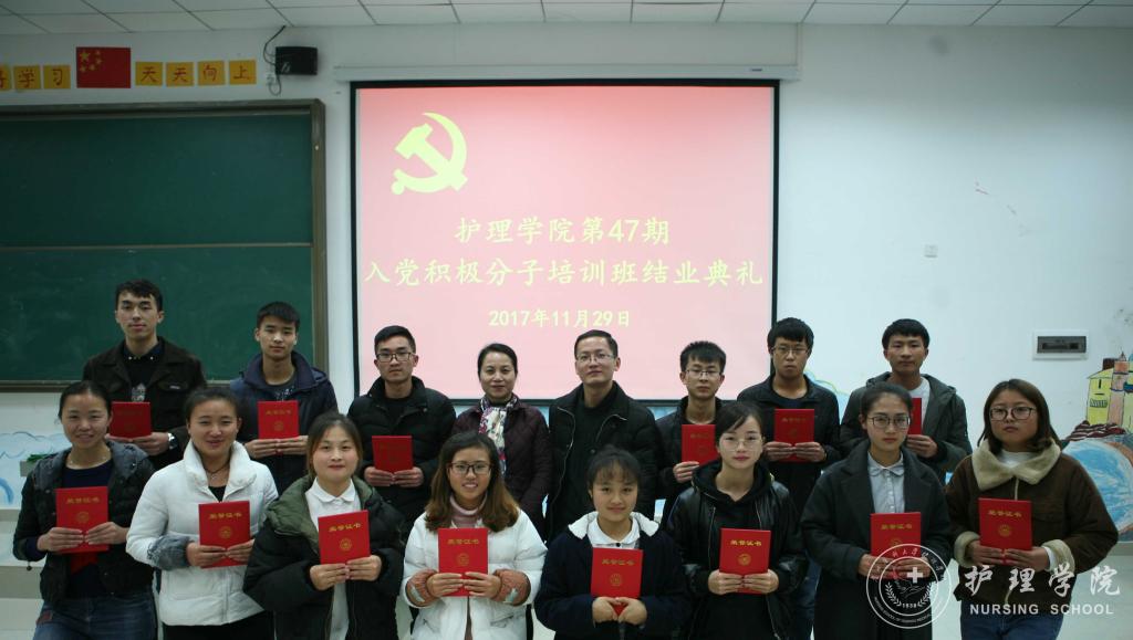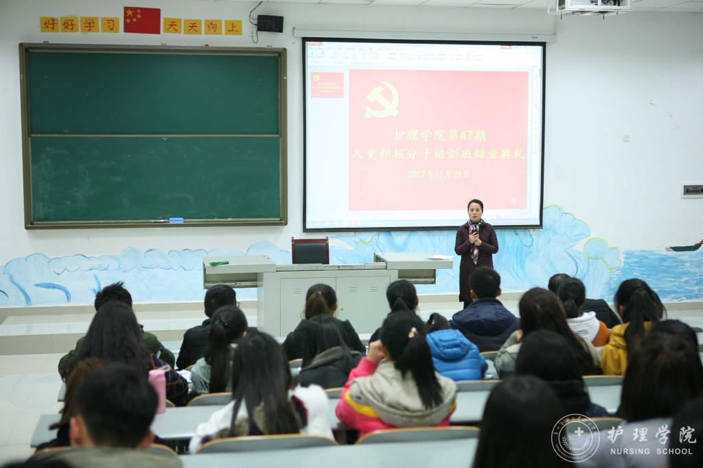 11月29日下午,美加墨世界杯官方网站第47期入党积极分子培训班结业典礼在南校区4404教室举行。美加墨世界杯官方网站党委副书记杨英、美加墨世界杯官方网站综合办陈瑜及全体学员参加了结业典礼。典礼由本期培训班班主任马景瑶主持。