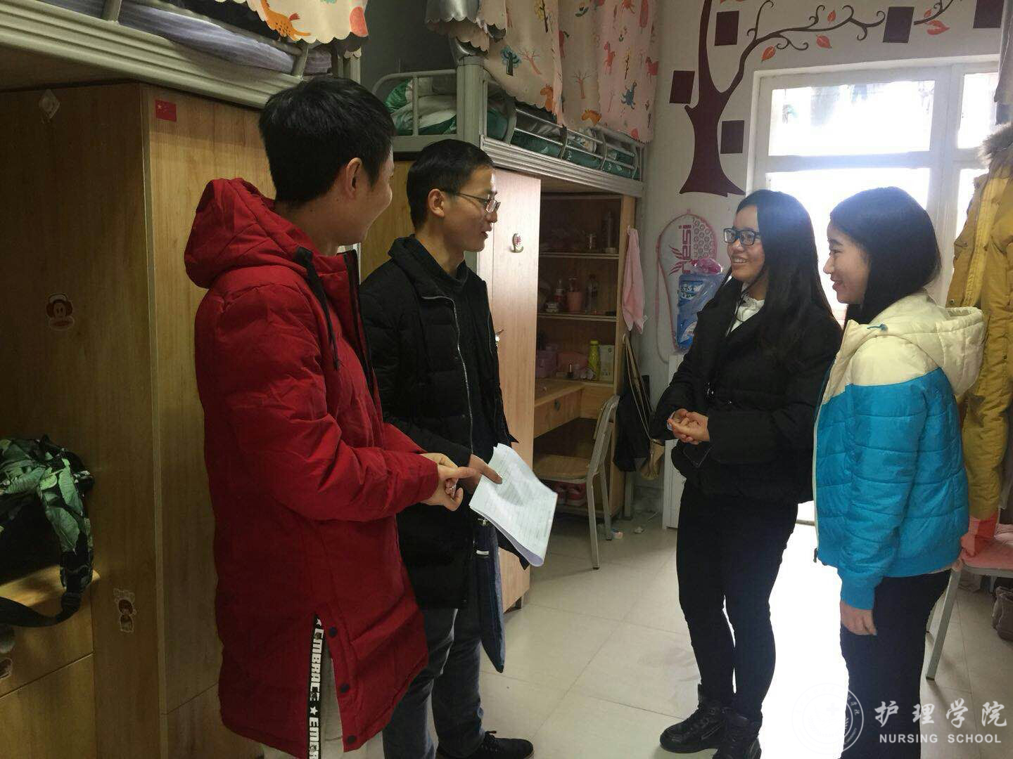 检查工作的重点是寝室安全隐患排查、寝室文化建设、寝室环境卫生。领导老师们来到学生宿舍仔细检查,与同学们亲切交流,认真听取同学们提出的建议。杨英指出,学校和学院高度重视学生的安全工作,学校和学院的领导老师也一直在为学生营造一个安全、健康、文明的学习生活环境而努力,希望同学们要珍惜在大学学习生活的美好时光,牢固树立安全意识和学习意识,养成良好的学习生活习惯,为今后的就业创业打下坚实基础。同时,杨英给同学们提出了几点要求:一是要严格遵守宿舍管理规定,严禁使用违章电器。二是要提高“五防”意识,确保人身财产安全。三是要树立寝室文化建设意识,美化寝室环境。