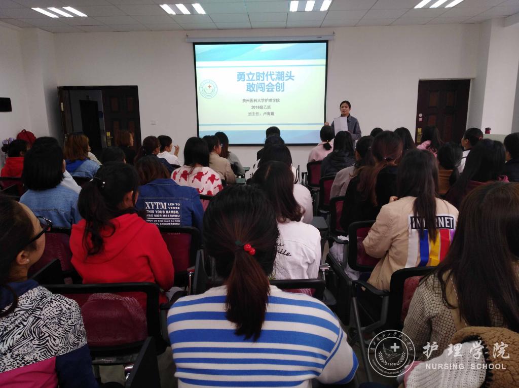 2018年3月26日上午,美加墨世界杯官方网站2016级甲班班主任马丽、2016级乙班班主任卢海霞分别在南校区4403教室与百川楼示教室给2016级甲班、乙班全体同学召开了主题为“勇立时代潮头·敢闯会创”的主题班会。