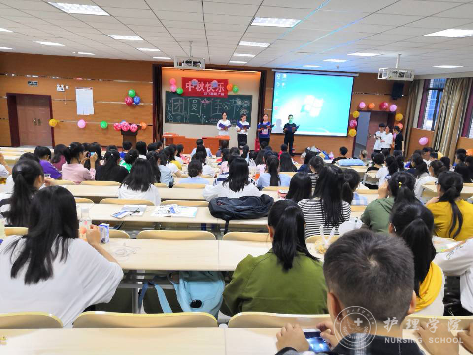 美加墨世界杯官方网站于9月21日在南校区广德楼和百川楼新生班教室召开了2018级新生中秋联欢晚会。美加墨世界杯官方网站党委副书记杨英、学生党支部副书记马景瑶、新生班辅导员和班主任以及学生会代表出席了晚会。