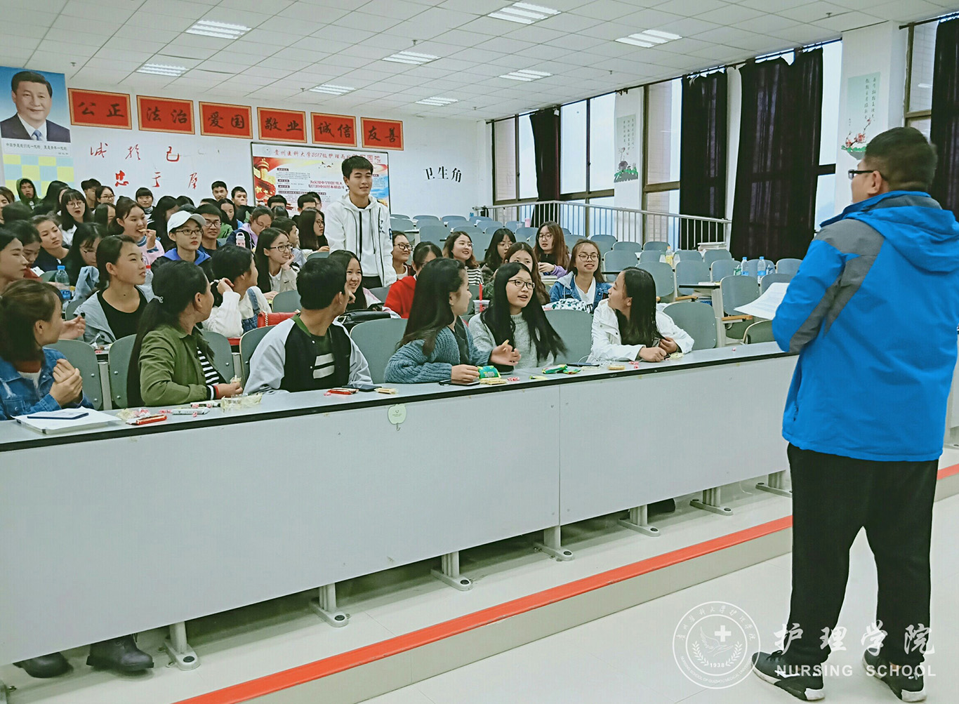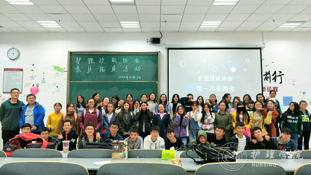 为了促进新老成员之间的交流,护理技能协会于10月13日下午5:30分在南校区7405教室开展了素质拓展活动暨2018年新生见面会。本次活动由副会长刘文壮和申思蓉同学主持,副会长申思蓉同学,各部门副部长、部分成员代表以及2018级全体新成员参加。